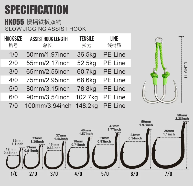 Este es el juego de anzuelos de asistencia para jigging lento TEASER HK05, una plataforma profesional de doble anzuelo diseñada para jigging lento (una popular técnica de pesca en agua salada).A continuación se muestran sus características principales, especificaciones y aplicaciones: