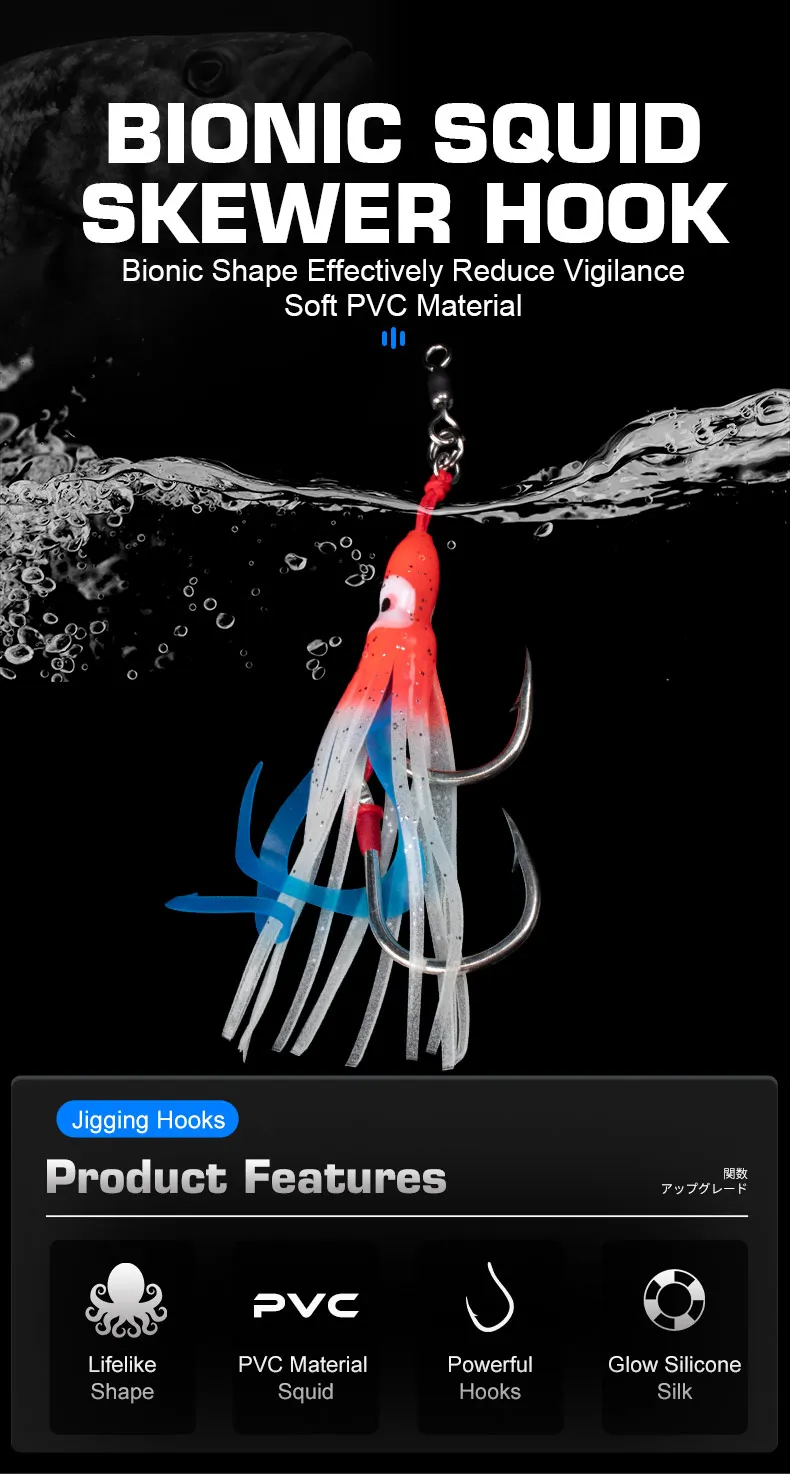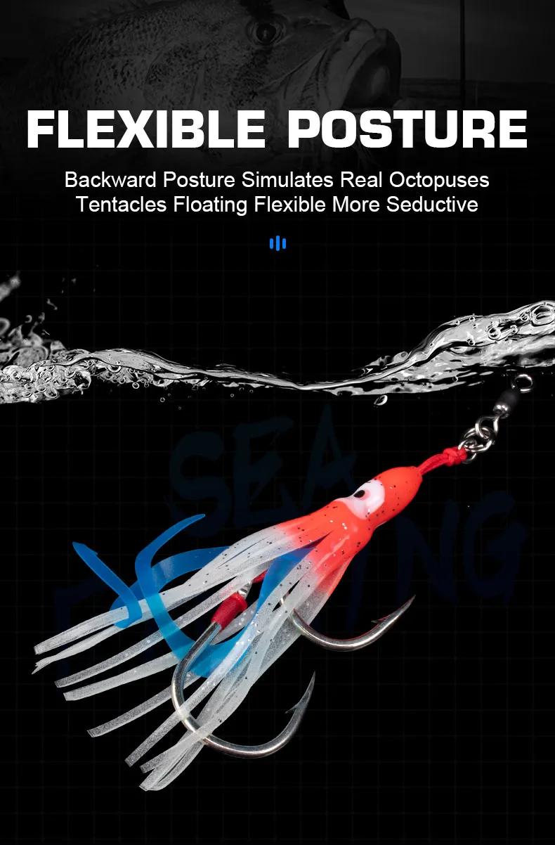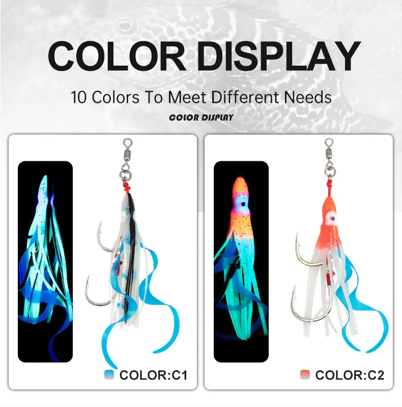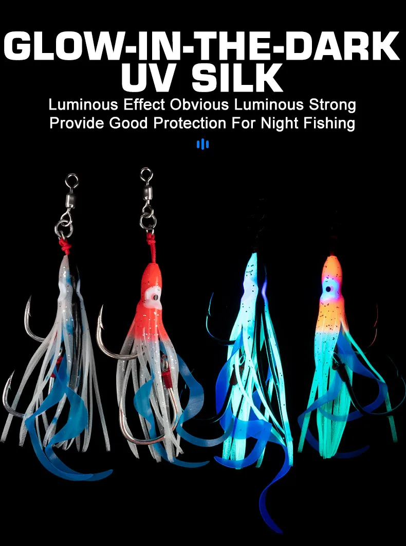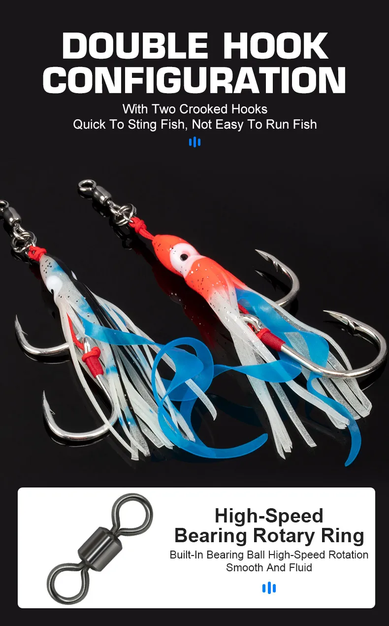 OBSESSION HK807 2 uds silicona suave falda de calamar señuelo lento Jigging ayuda gancho brillo curricán Jigbait agua salada doble gancho de pesca