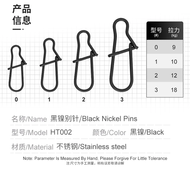 BSESIÓN HT002 25 piezas 0# 1# 2# 3# Aparejos de pesca de carpa de acero inoxidable, conector de pines de níquel negro, accesorios de pesca de Pesca a presión