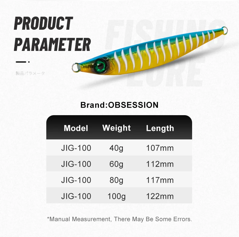 OBSESSION J111 40g 60g 80g 100g agua salada Micro cebo de pesca plano Jigging sardina resplandeciente Jig cebos de pesca señuelos de plantilla de metal