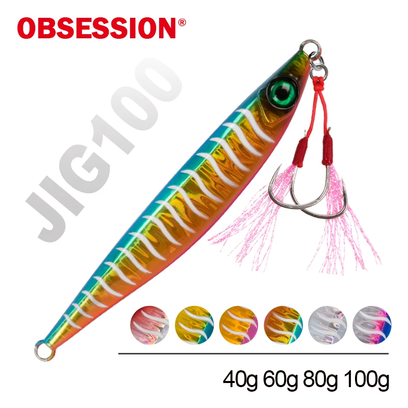 OBSESSION J111 40g 60g 80g 100g agua salada Micro cebo de pesca plano Jigging sardina resplandeciente Jig cebos de pesca señuelos de plantilla de metal