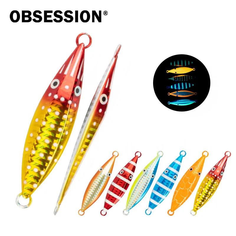 OBSESSION-J105 Señuelo de Jigging Lento, Diseño de Doble Cara, 60g, 80g, 100g, 150g, G, Agua Salada, Resplandor, Jigbait, Pesca de Hundimiento