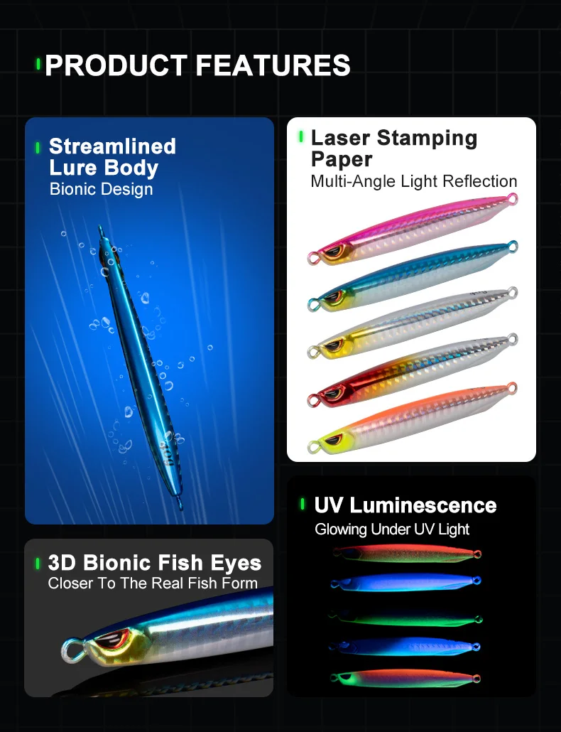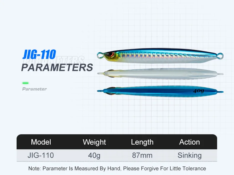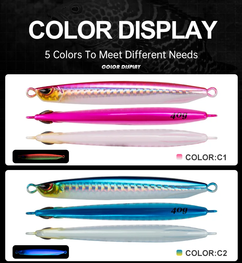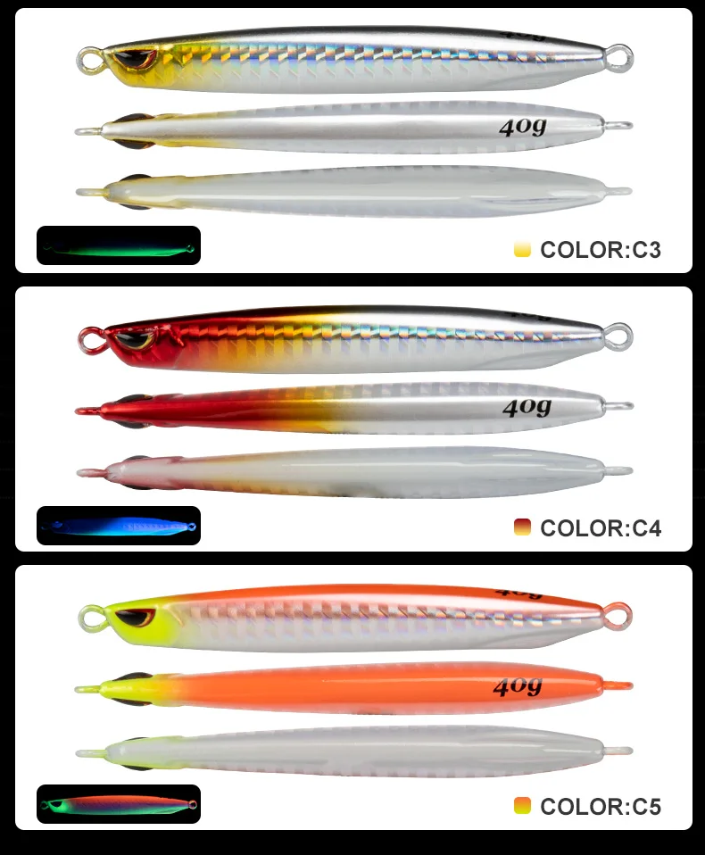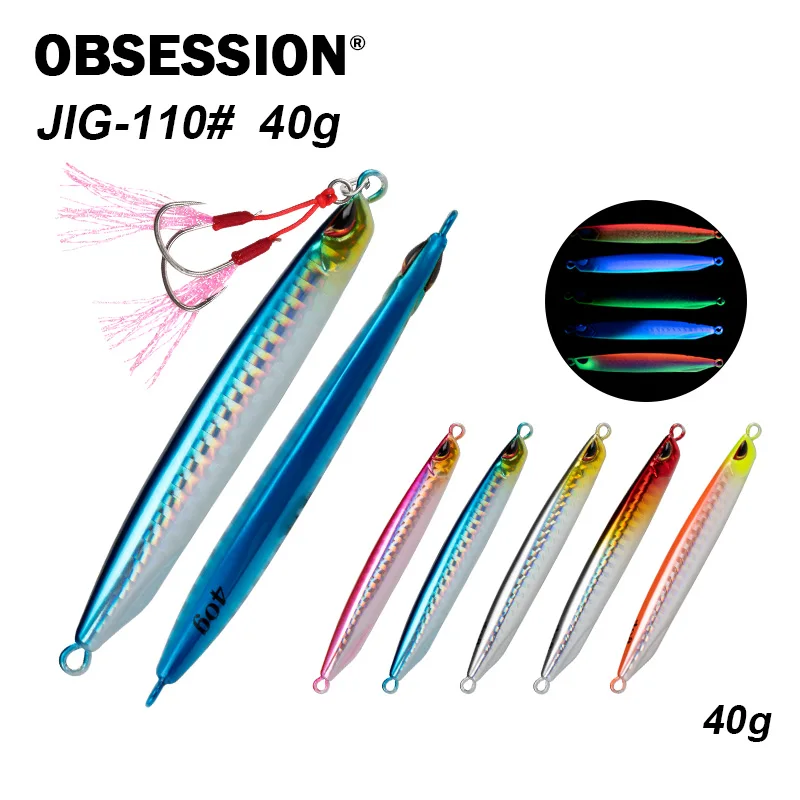 OBSESSION J110 40g Drag Metal Cast Super Slim Jigging Lure Luminous Fishing Jigs Bait Saltwater Sinking Fishing Metal Jig Lure