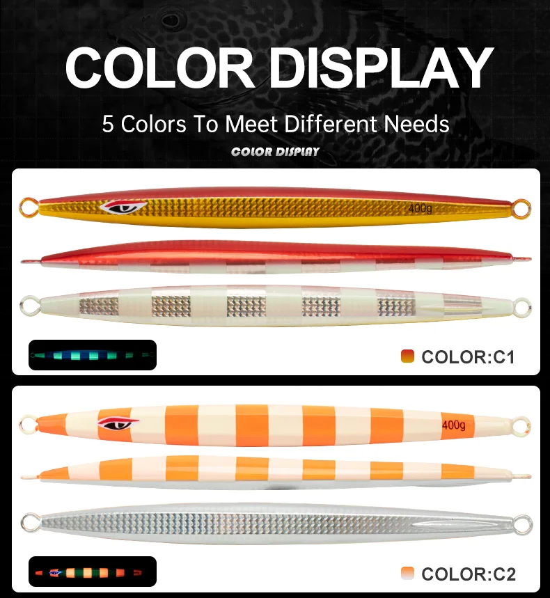 OBSESSION J115 400g 500g 600g 700g plantilla de pesca luminosa cebo Deepsea señuelo de Jigging de Metal agua salada hundido brillo señuelo de plantilla de Metal