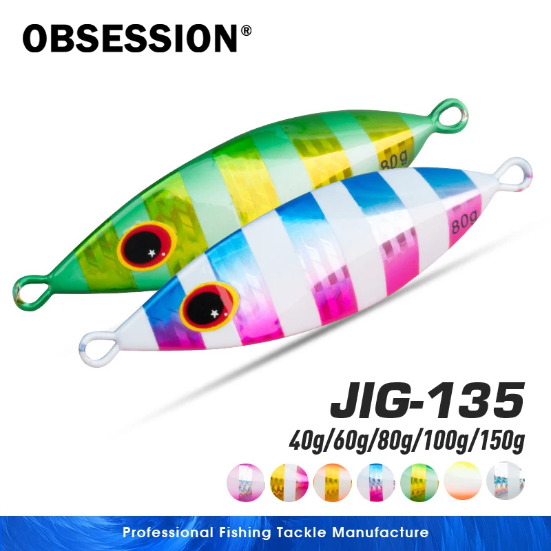OBSESSION J135-señuelo de pesca jigging, cebo de metal artificial de caída lenta, 40g, 60g, 80g, brillante, para agua salada