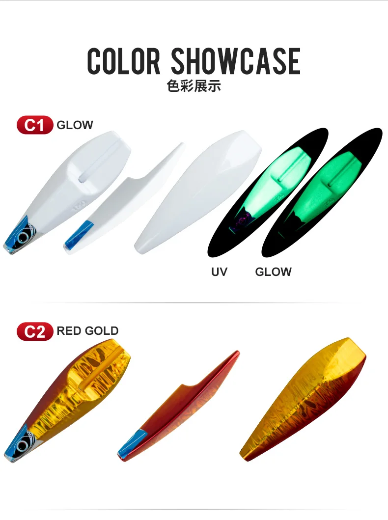 J136 Rock Hopper inchiku Slider Jig utiliza peces de plomo de placa de metal de hierro estilo inchiku, desencadenando eficazmente los ataques de depredadores como Snapper, Blue Cod, John Dory y Kingfish. La característica única de la plantilla Rock Hopper es que el cuerpo principal está separado del gancho auxiliar en forma de falda y se desliza hacia abajo a lo largo del flujo de agua a medida que desciende a través de la capa de agua, presentando una escena espectacular de depredadores persiguiendo a sus presas y estimulando el poder de ataque.