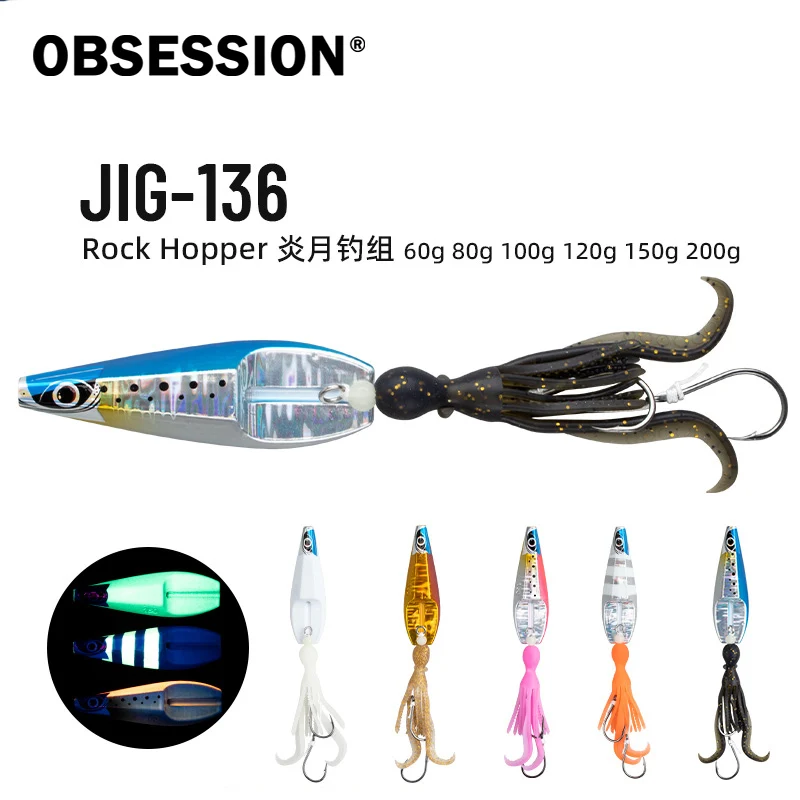 OBSESSION J136 Rock Hopper inchiku Slider 80g 100g 120g 150g Jig Lure agua de mar resplandor pesca metal biónica jigging cebo con gancho