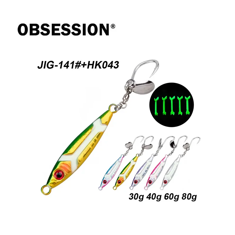 OBSESSION J141 señuelo de plantilla de metal duro luminoso, jigging cebo de pesca de agua salada, cuchara de pesca de hundimiento rápido, 30g, 40g, 60g, 80g