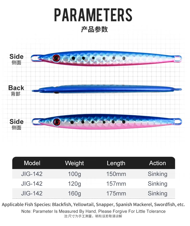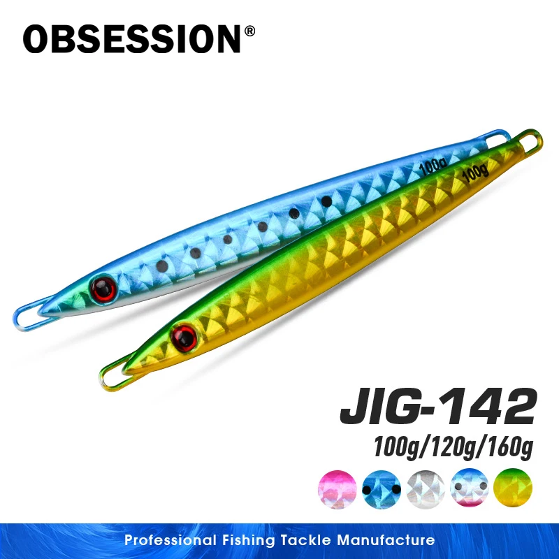 OBSESSION J142 100g 120g 160g pesca Metal Jigging señuelo Artificial luminoso Jigbait hundido agua salada pesca Metal Jigs señuelo
