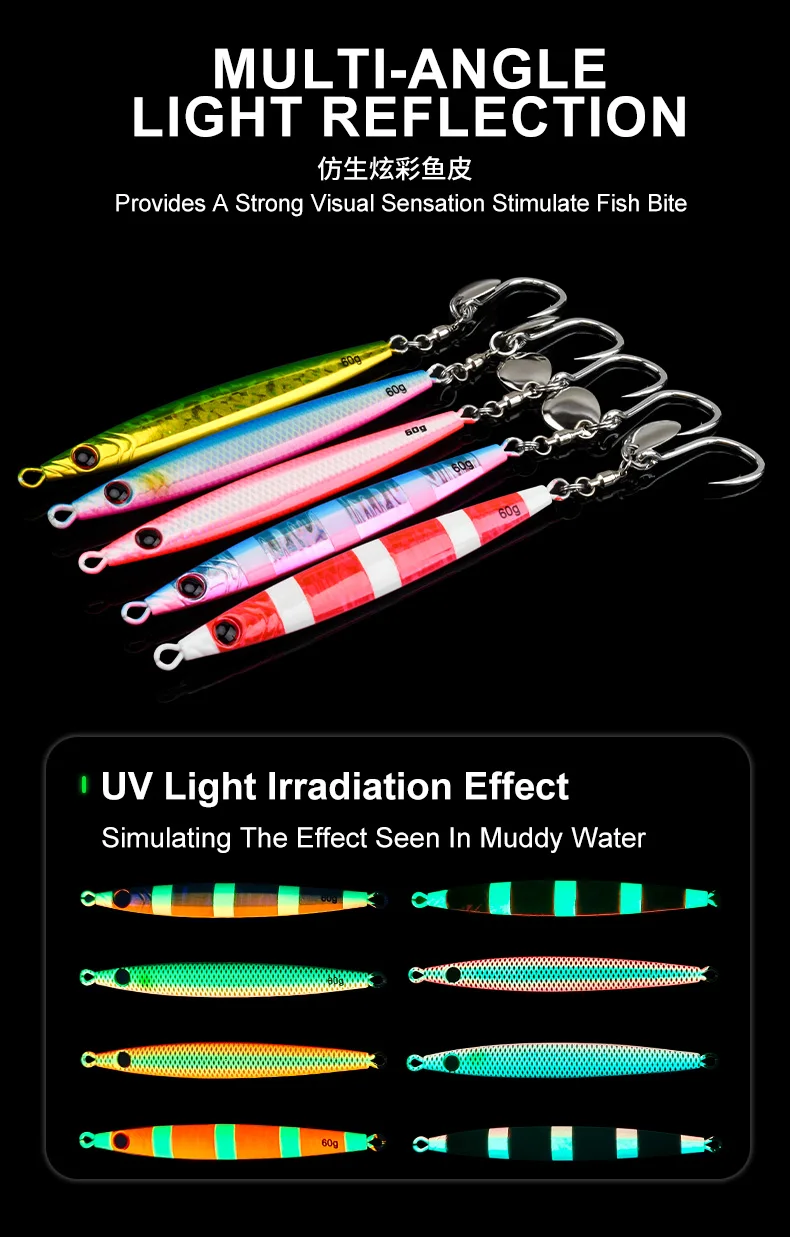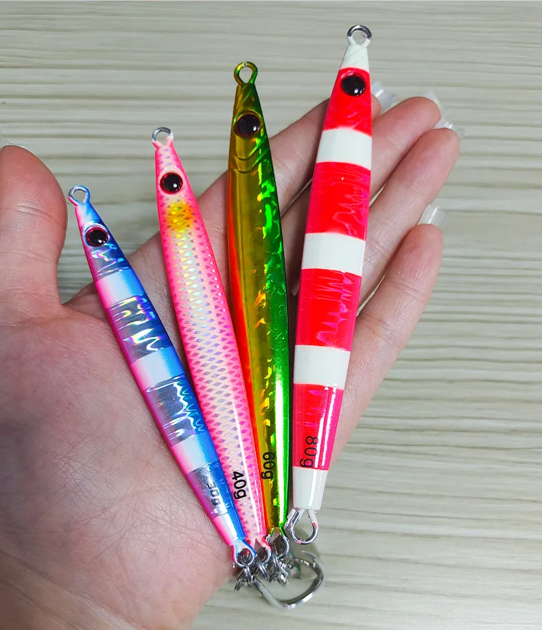 OBSESSION J146 40g 60g 80g lanzamiento largo láser luminoso plantilla de Metal señuelo rápido caño Jig cebo de pesca de sardina cebos de jigging de agua salada