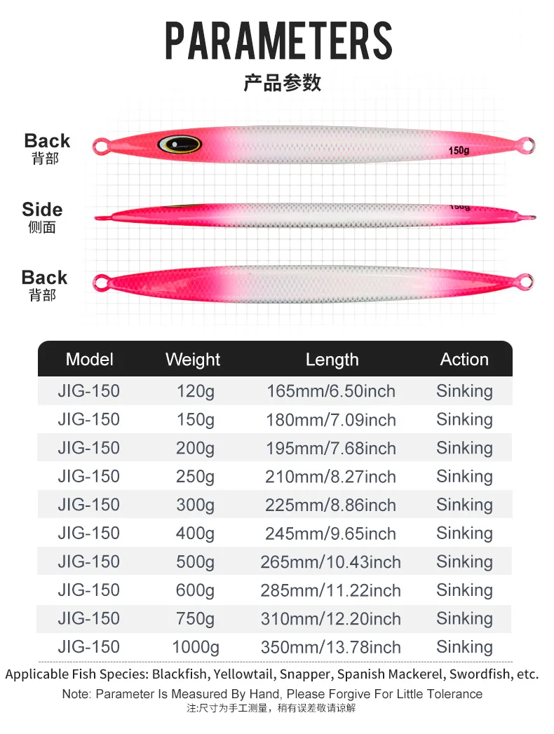 OBSESSION J150 400g 500g 600g 750g 1000g gran peso agua salada pesca Metal Jigging señuelo brillo Jigs señuelos hundimiento rápido Jigbait