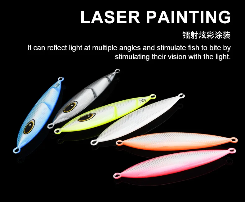 La pintura láser y la colorida piel de pez biónica reflejan la luz en múltiples ángulos, estimulando la visión de los peces y provocando picaduras agresivas.Esta característica garantiza que el señuelo se destaque en diversas condiciones del agua.