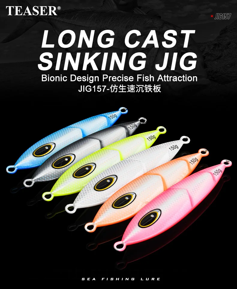 Presentamos la plantilla de hundimiento de lanzamiento Long Cast TEASER JIG157, un señuelo de pesca de alto rendimiento diseñado para atracción de peces de precisión y lanzamientos a larga distancia.Diseñado con características biónicas, imita presas reales para atraer una amplia gama de especies de agua salada, lo que lo convierte en imprescindible para los pescadores serios.