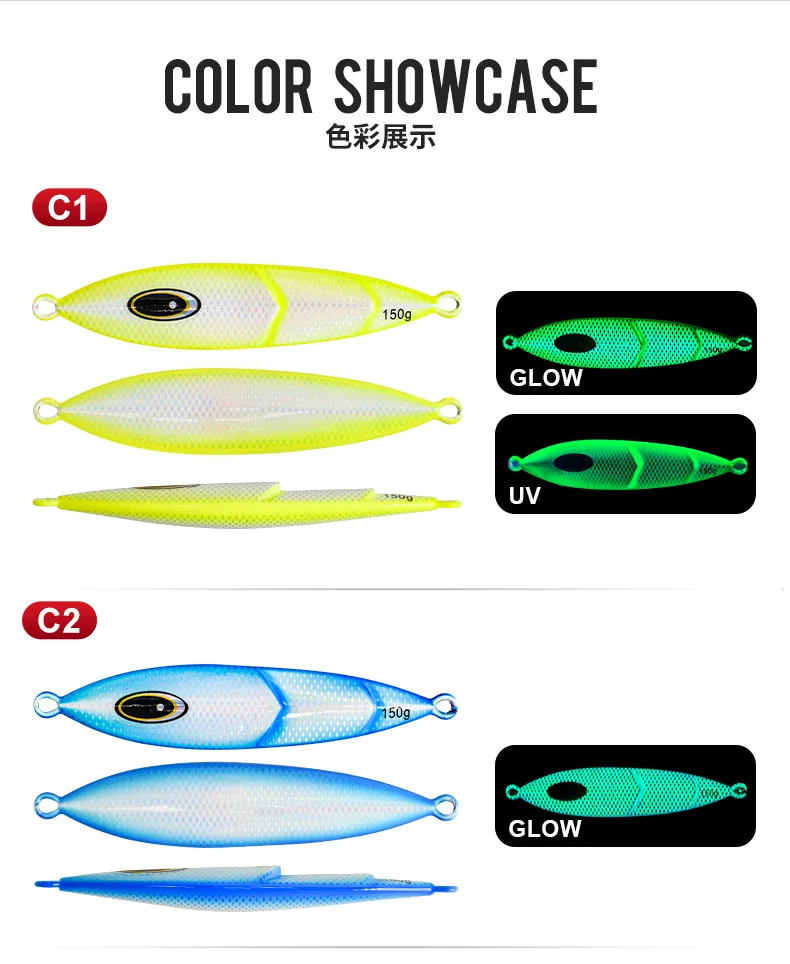 La superficie emite un brillo vívido bajo los rayos ultravioleta, con mayor visibilidad por la noche.Este efecto luminoso hace que el señuelo sea irresistible para los depredadores nocturnos y las especies de aguas profundas.