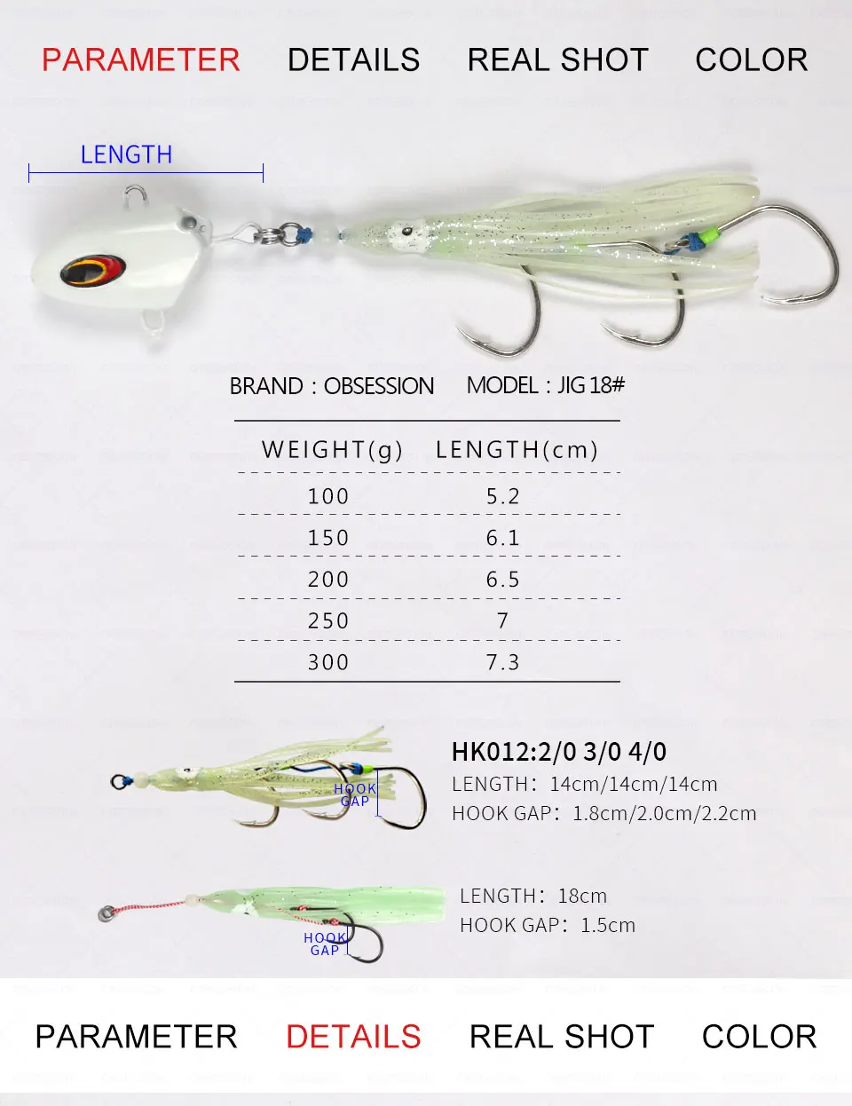 OBSESSION 100g150g200g250g300g Kabura Bullet Metal Jig Head Squid Assist Hooks Sinking Jigging Lure Bottomship Marlin Inchiku