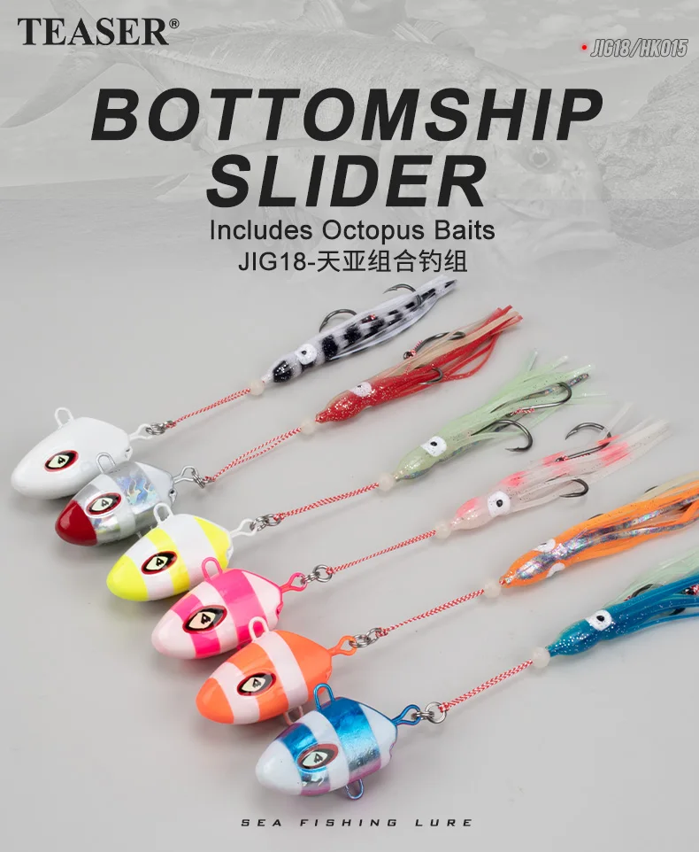 Revolutionary jigging style with our Jig 18#, This Jigging style puts a new spin on bottomfishing.Is the exciting approach to catching botto species and the unique design of the jig will make sluggish or ininterested fish jump on the Hook.