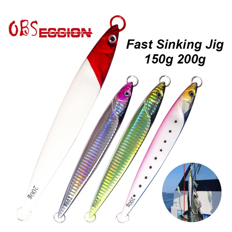 OBSESSION150g200g Japón láser de hundimiento rápido resplandor agua salada Deepsea Jig Metal duro cebo de plomo Vertical Jigging Casting señuelo de pesca
