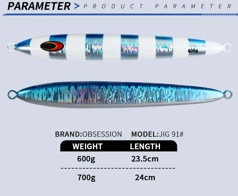 OBSESSION J91 600g 700g gran peso barco de mar pesca Metal Jig señuelo agua salada hundimiento Jigging señuelo luminoso revestimiento láser Jigbait