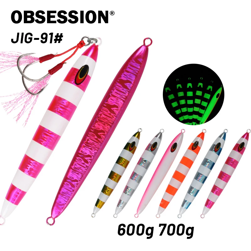 OBSESSION J91 600g 700g gran peso barco de mar pesca Metal Jig señuelo agua salada hundimiento Jigging señuelo luminoso revestimiento láser Jigbait