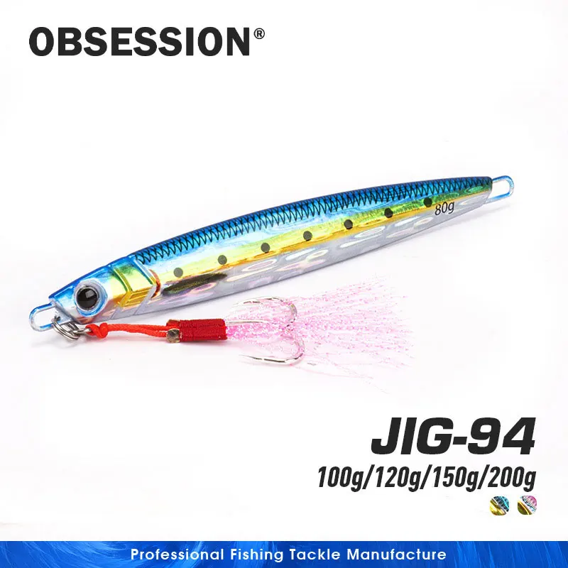 OBSESSION 100g 120g 150g 200g pesca en el mar plantillas de Metal jigging lento impresión 3D láser cebo Artificial barco pesca señuelos de Metal duro