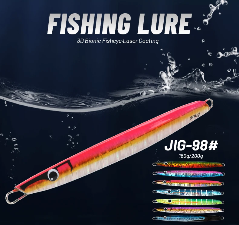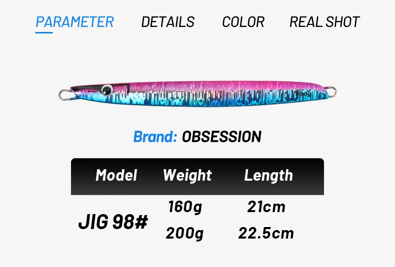OBSESSION J98 160g 200g cebo luminoso de pesca de Metal Jigging revestimiento láser plantillas duras señuelo agua salada señuelo de Jig de hundimiento rápido