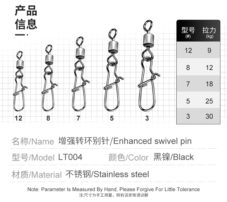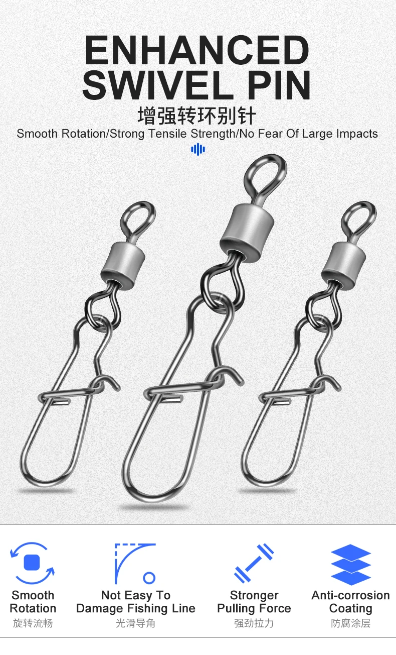 OBSESSION LT004 20 unids/bolsa rodamiento de acero inoxidable pasadores giratorios pesca giratorio Snap accesorios de pesca conector anillos sólidos