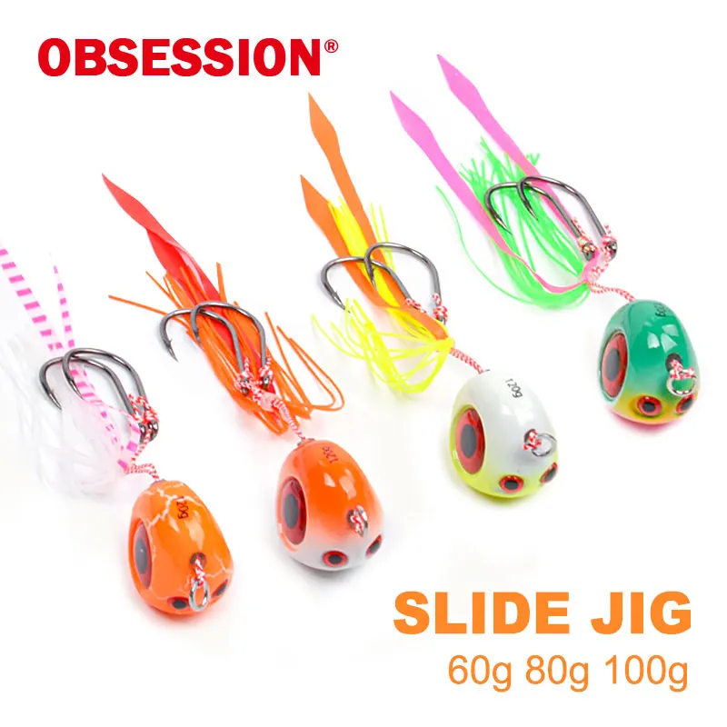 OBSESSION 60g 80g 100g Tenya Tai Rubber Kabura Jig Slide Jig Snapper Grouper Sea-bream Jig Head con falda de goma Jigging Lure