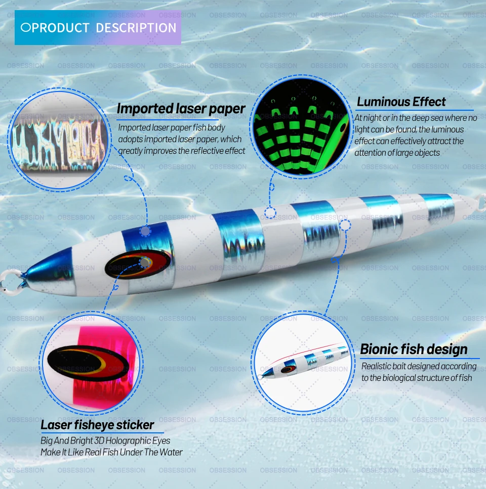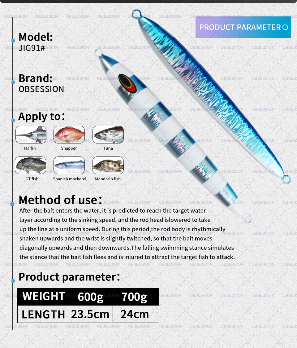 OBSESSION 600g 700g hundimiento rápido Vertical Metal Jig fundición larga curricán Jigging mar pesca señuelo Artificial Spinning