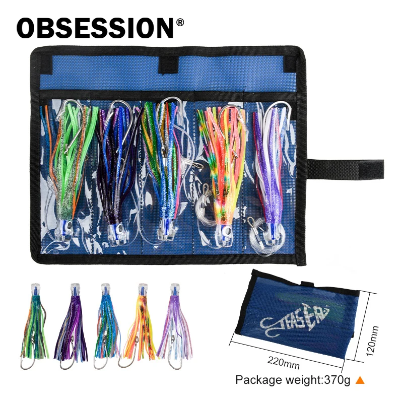 OBSESSION TR001 5 unid/set Big Game Trolling señuelo de pesca Deepsea Tuna Billfish cebo 6 '5 ''/50g falda suave pulpo juego de cebo de silicona