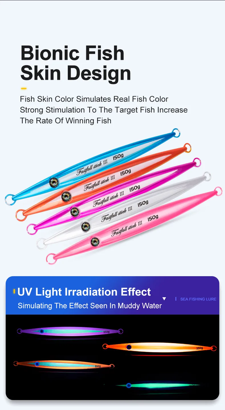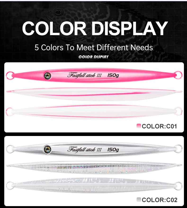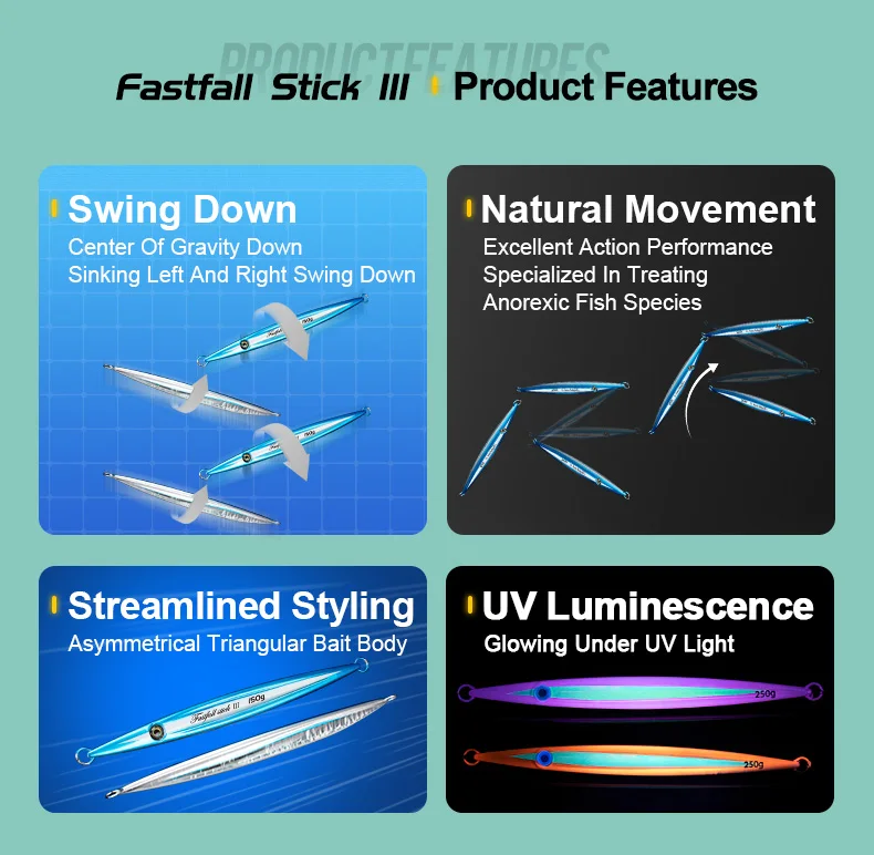 Con forma aerodinámica de automóvil deportivo, superficies hidrodinámicas triangulares, equipadas con ojo 3D con logotipo J personalizado, el Gangster Stick 2 funciona increíblemente en jigging rápido, en la caída, jigging lateral, baja y alta corriente para conectarte incluso en días lentos.