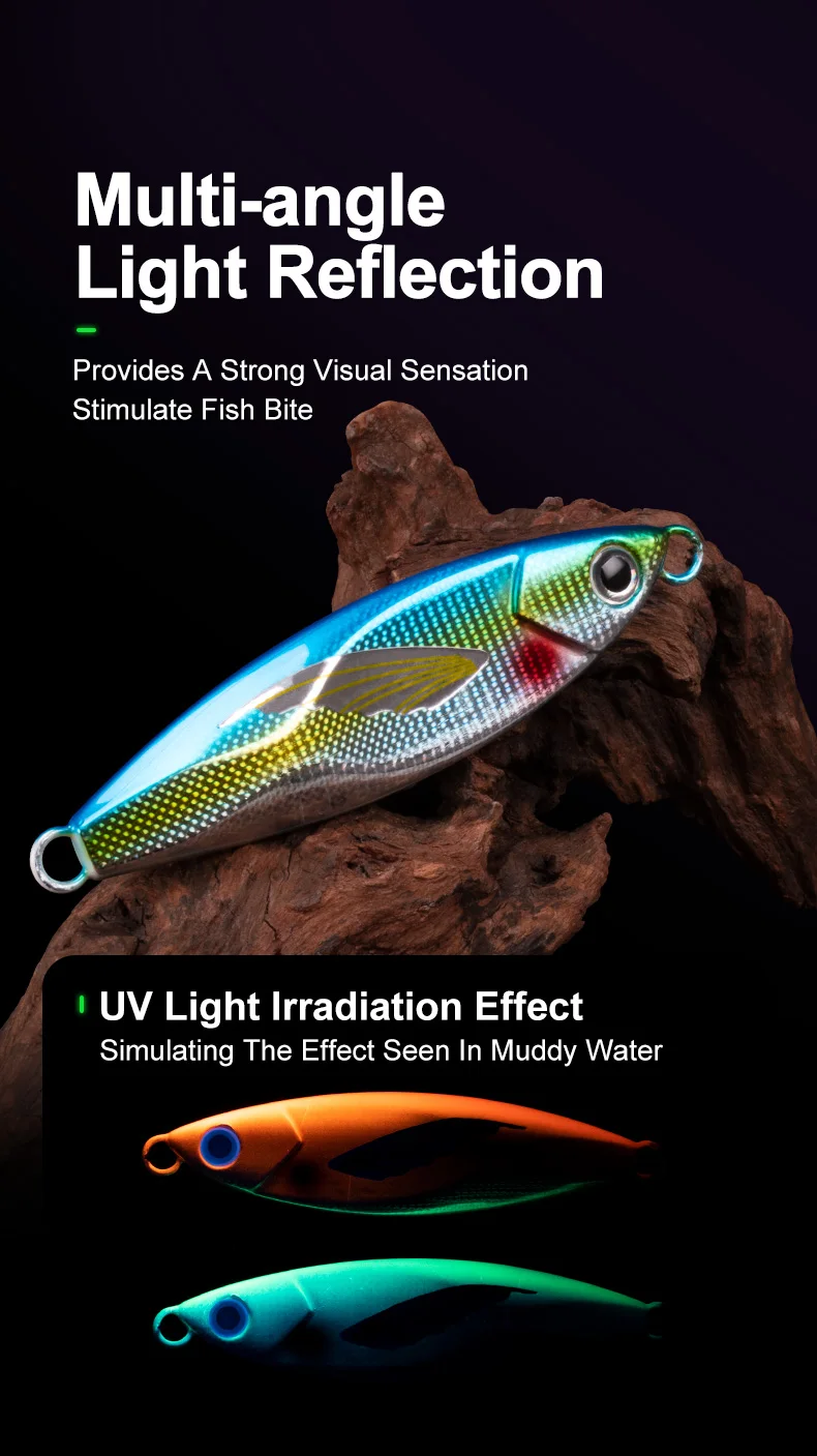 Los J106 Underground Dub Step Metal Micro Jigs se han desarrollado para satisfacer las demandas de los pescadores de pesca en roca ligera más avanzados. Son probablemente los únicos que combinan las virtudes de los jigs de peso trasero y los jigs lentos. El resultado final es un señuelo que, a pesar de su tamaño relativamente pequeño, no conoce el miedo al viento o las corrientes; el Dub Step es un señuelo que puede desafiar las condiciones climáticas en las que ni siquiera se nos ocurriría pescar al estilo LRF.