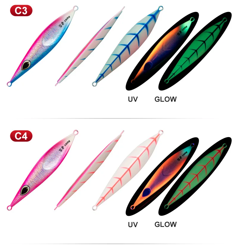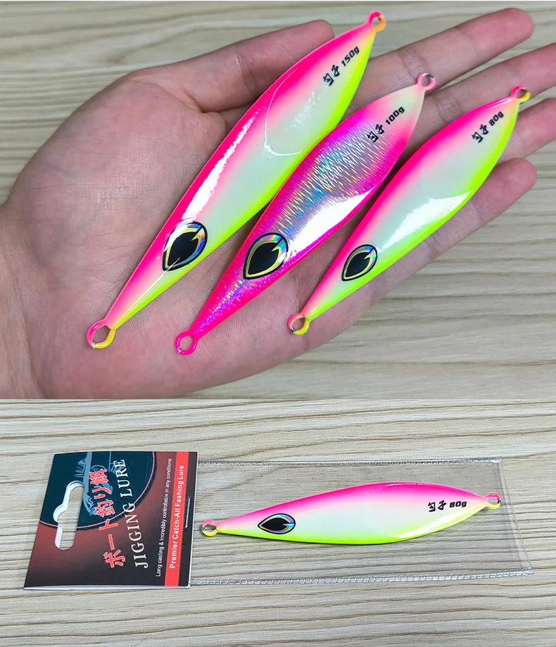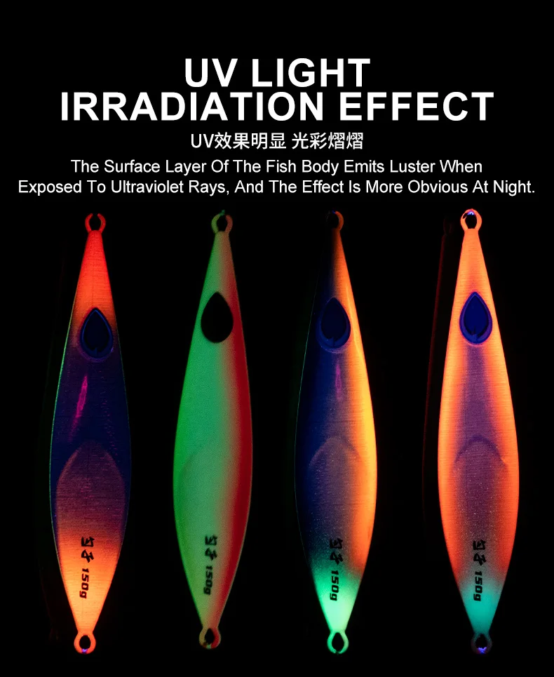 OBSESSION 80g 100g 150g Artificial UV resplandor cuchara Artificial Micro fregadero lento Metal Jigging señuelo de pesca atún lubina mar barco señuelo