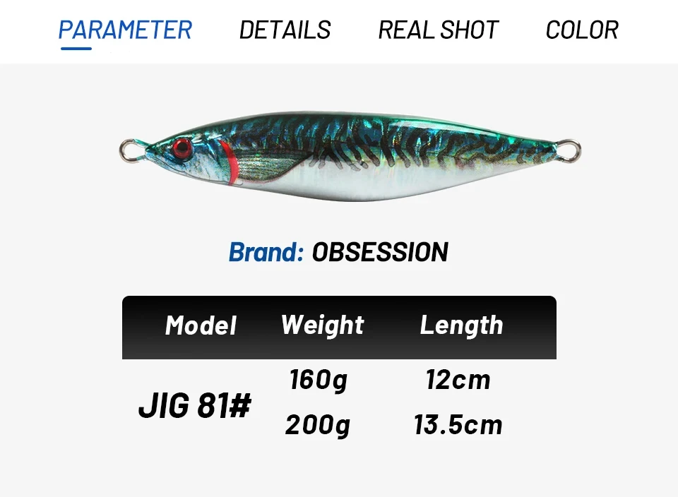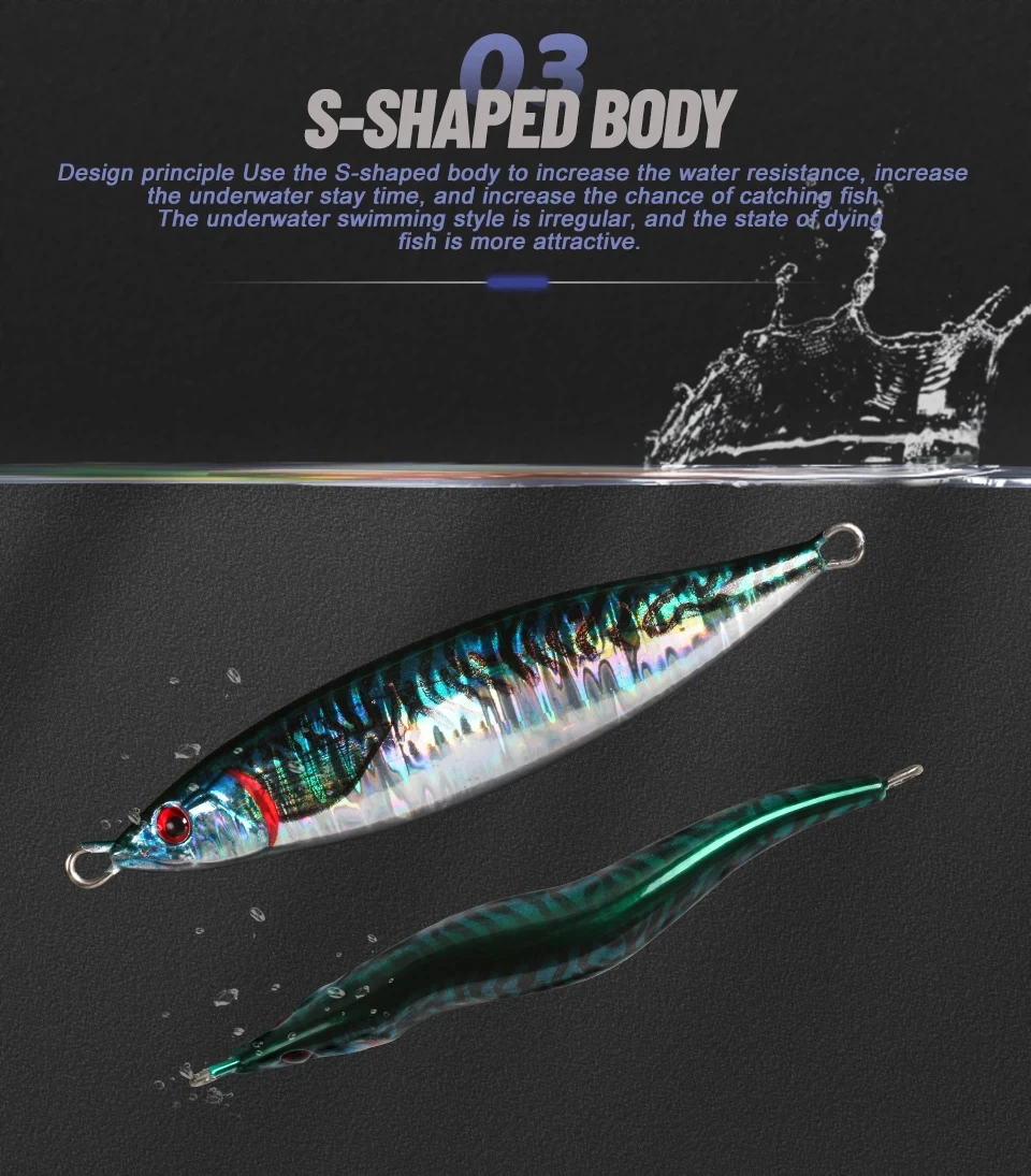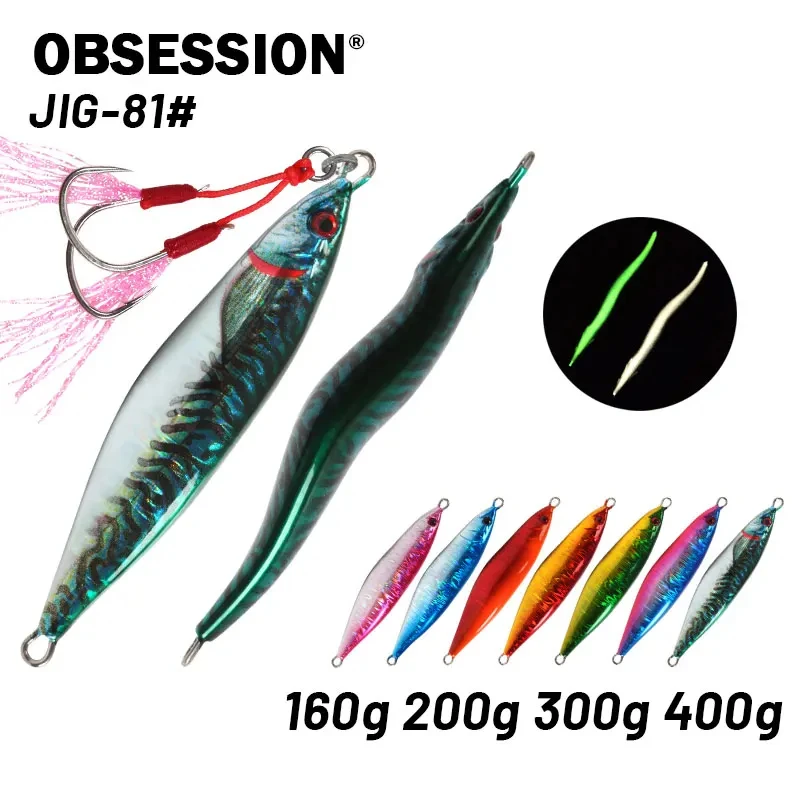OBSESSION 160g 200g 300g 400g Señuelo Jigging de hundimiento lento Impresión 3D Láser S Forma Señuelo de pesca Agua salada Cebo artificial de metal duro