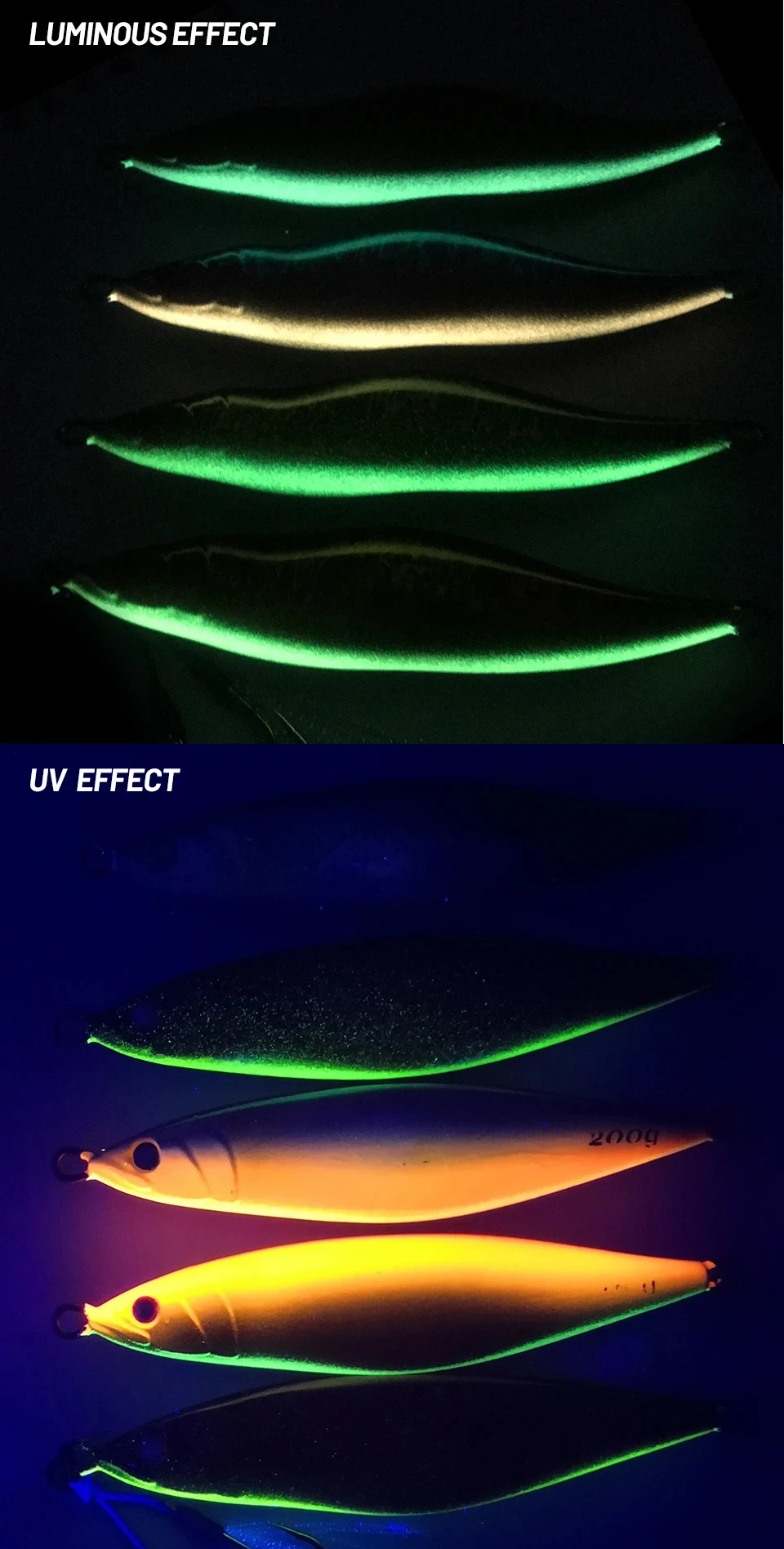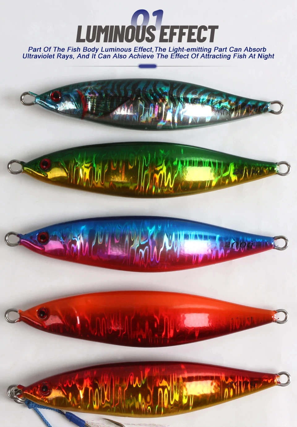 Este tipo tiene un efecto luminoso de cebra que puede atraer a más peces bajo el agua.