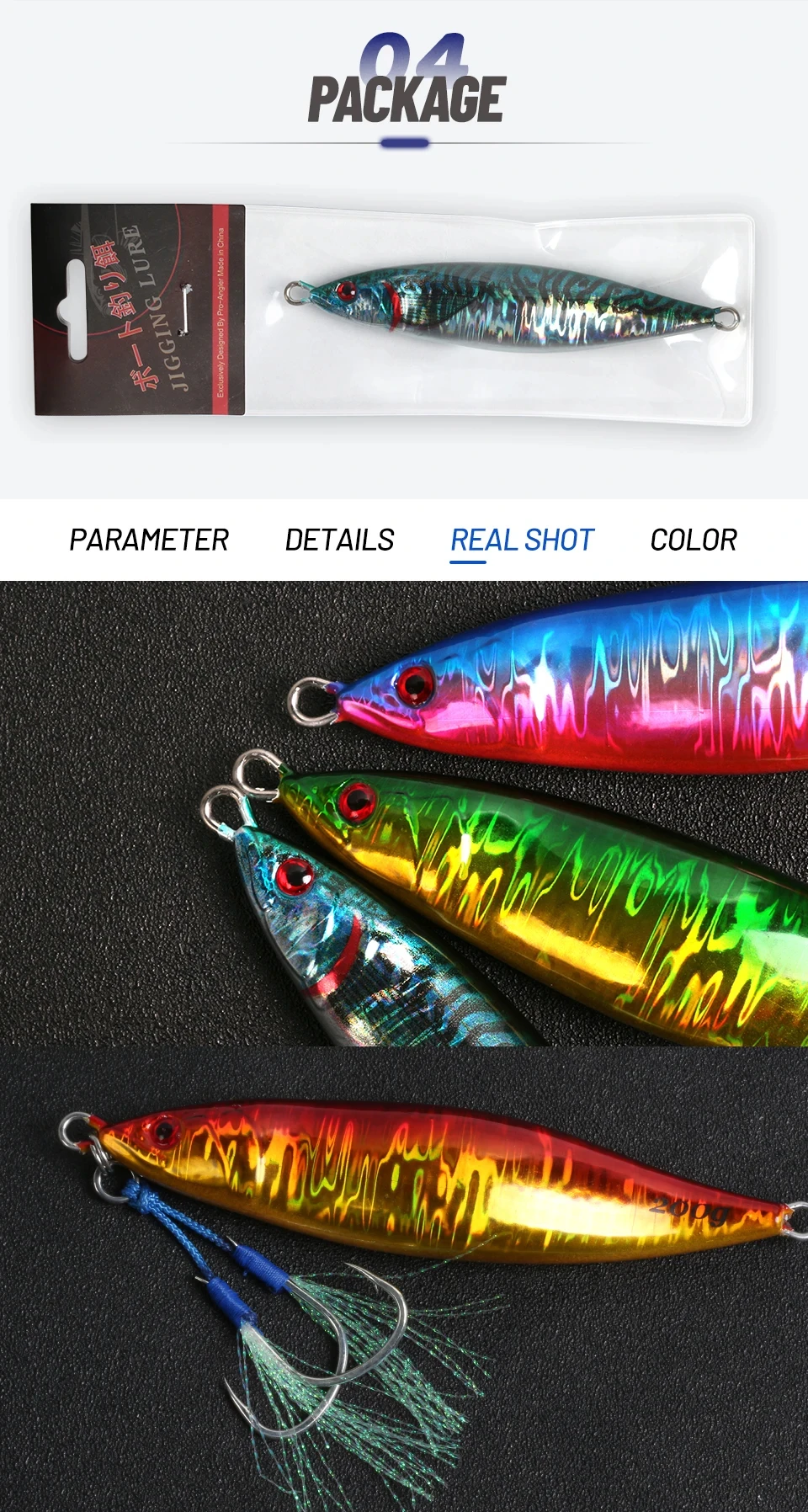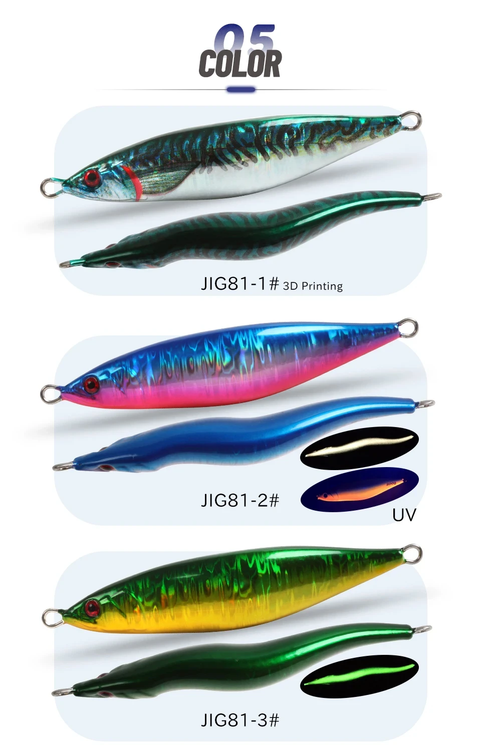* Se puede especificar el color del señuelo jig en el conjunto. Puede anotar el color que desee al realizar un pedido o ponerse en contacto con el Servicio de Atención al Cliente en segundo plano para elegir el color que desee.
