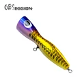 OBSESSION 120g Wooden Topwater Popper - Popper de superficie de madera para pesca en el océano. Deep Sea Chugger para barco. Cebo de trolling para pesca de altura. Peso aproximado 120g. Anillos guía de acero inoxidable. Acabado láser atractivo.