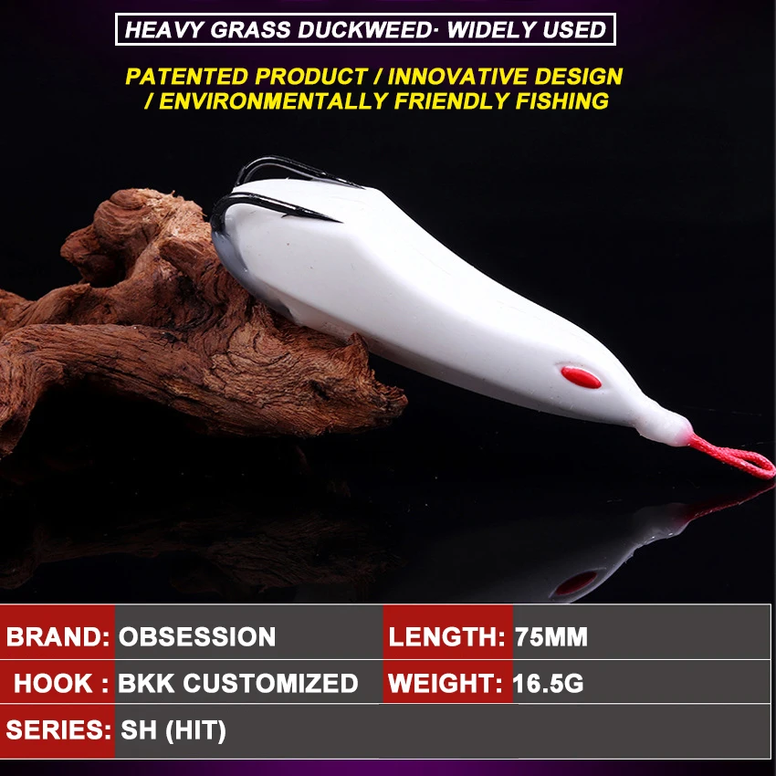 OBSESSION-señuelo de rana blanda para pesca, pez gato de agua salada, lubina negra, de silicona Artificial, 75mm, 16,5g, 5 unidades por lote