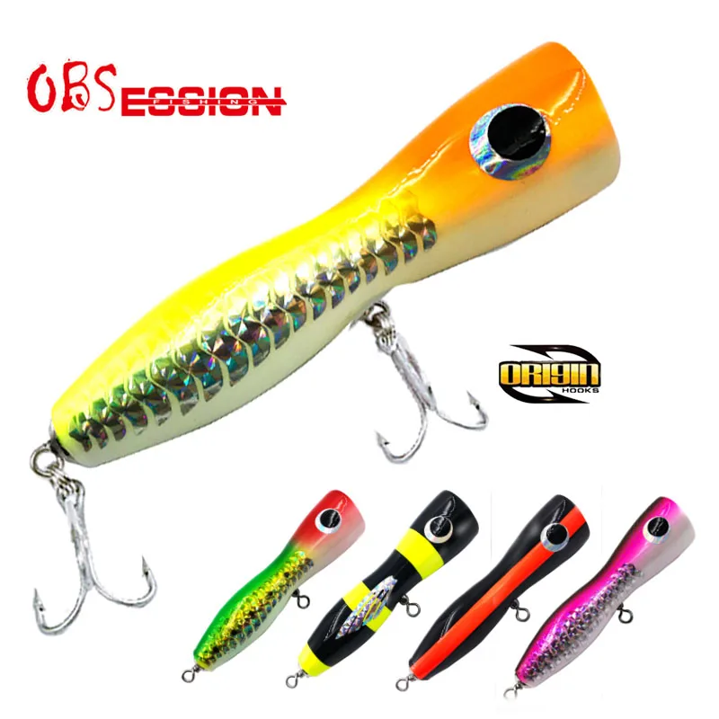 "OBSESSION 65g Topwater Wooden Popper Stickbait Surface Popping Lure Deep Sea Boat Fishing Bait Origin Hook Artificial Crankbai