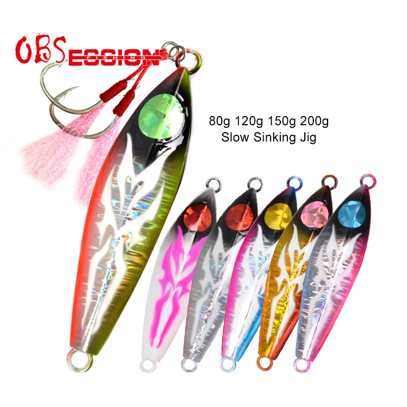 OBSESSION Jack Eye, señuelo Jigging lento que se hunde, cebos artificiales 80g120g150g200g, anzuelo Vertical de pesca en mar veloz para mar