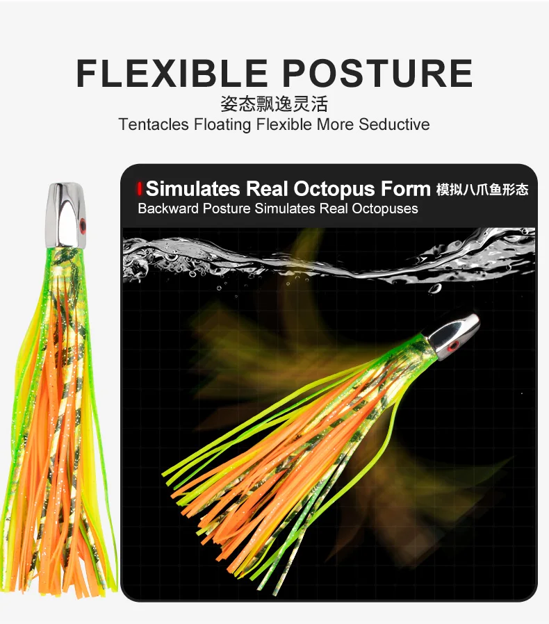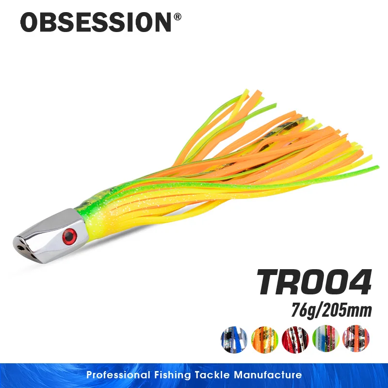 OBSESSION TR004 9 pulgadas/23cm 76g cabeza de cobre de aguas profundas señuelo de curricán brillo UV falda suave Suqid cebo de pesca gran juego atún Marlin señuelo