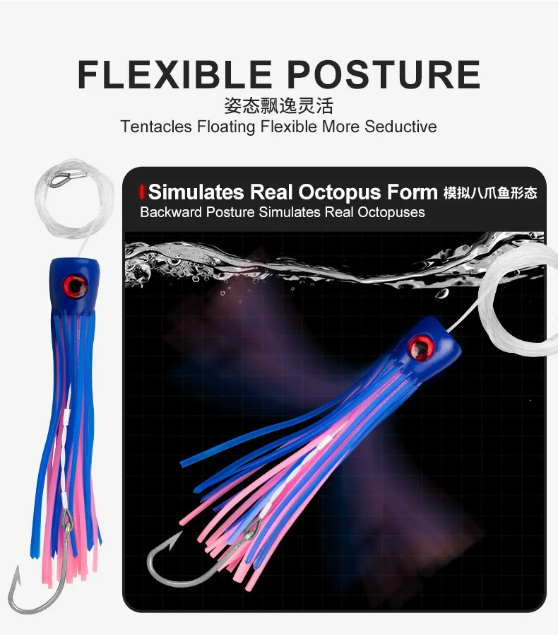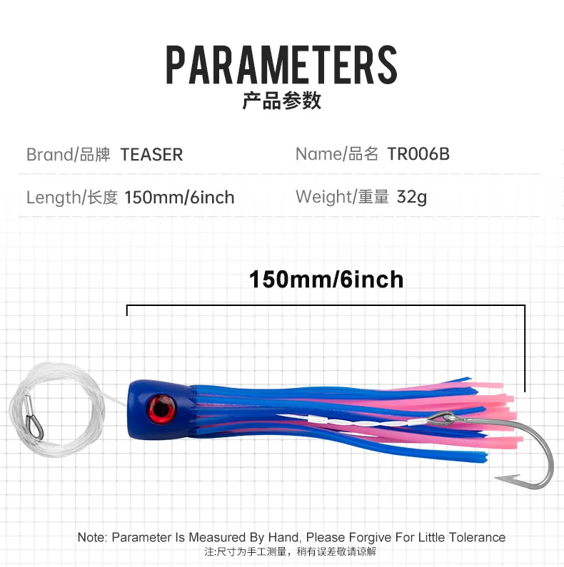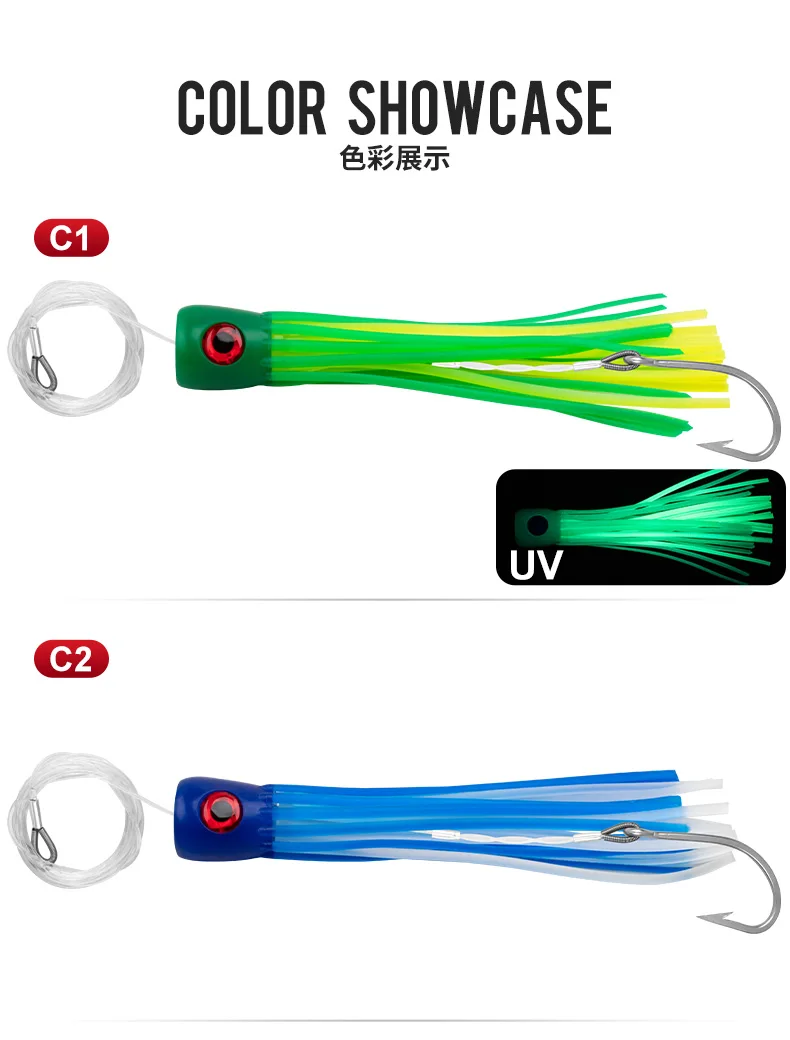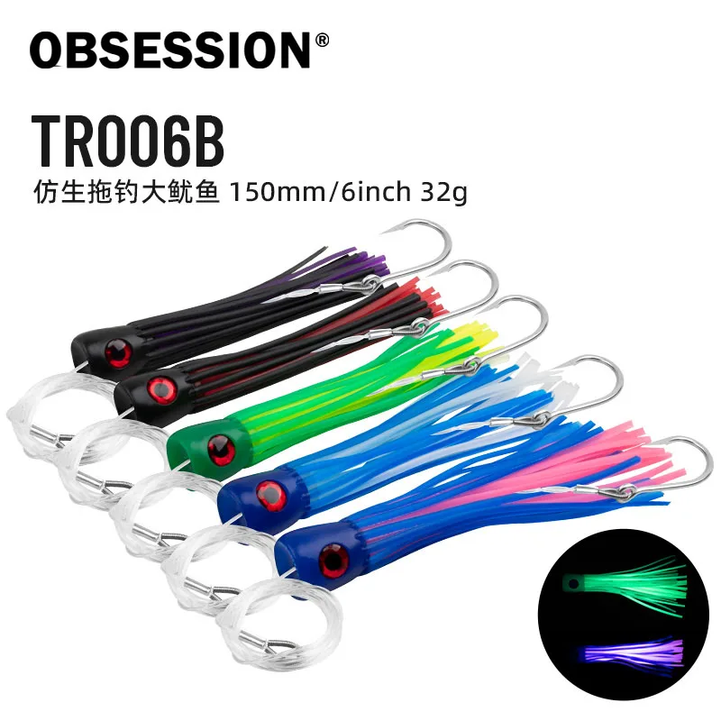 OBSESSION TR006-B 150mm/6 pulgadas gran juego pesca atún Marlin señuelo de corrico barco de mar pesca pulpo calamar falda resplandeciente cebo