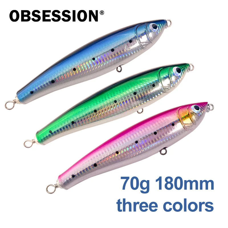 OBSESSION WD108 70g18cm Popper Trolling de madera gran juego superficie de superficie de superficie Popping lápiz cebo de pesca de carpa de agua salada de aguas profundas