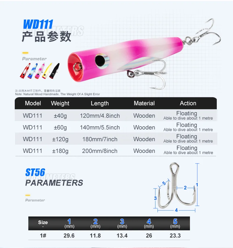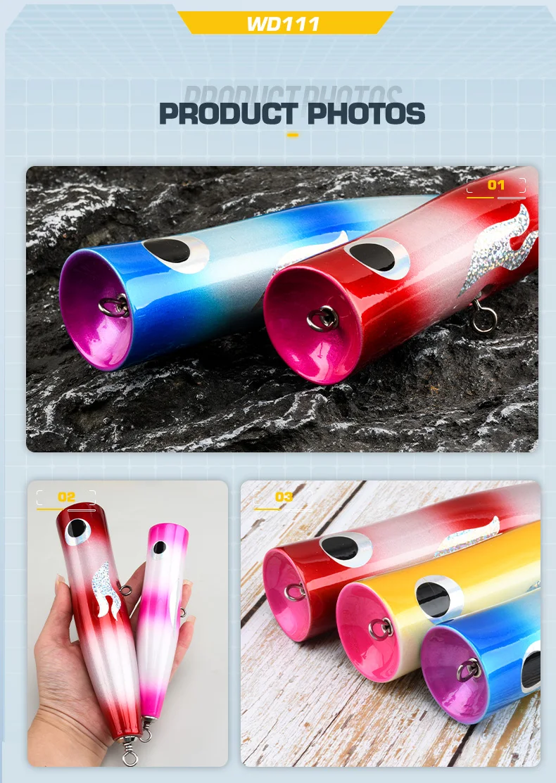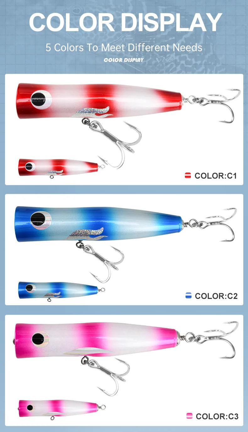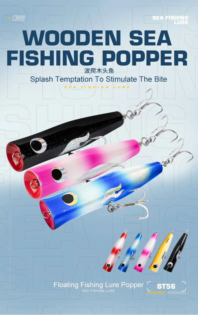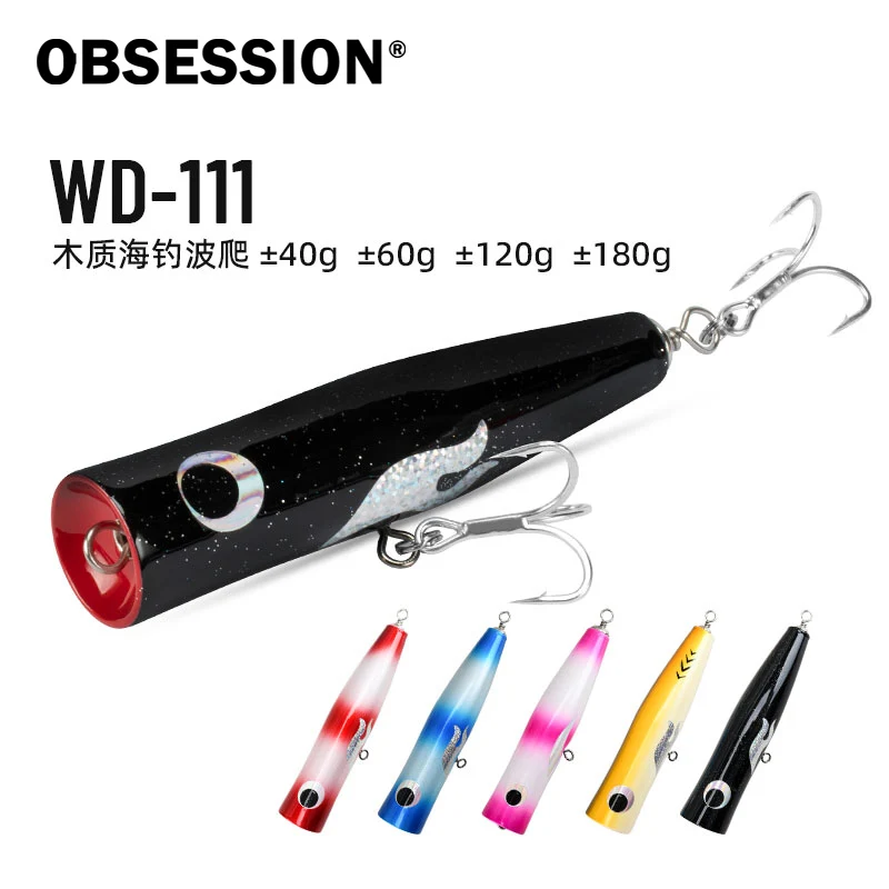OBSESSION WD111 40g 60g 120g 180g Topwater Wooden Popper Trolling Lure Floating Big Game Bait Saltwater Boat Fishing Wood Lures