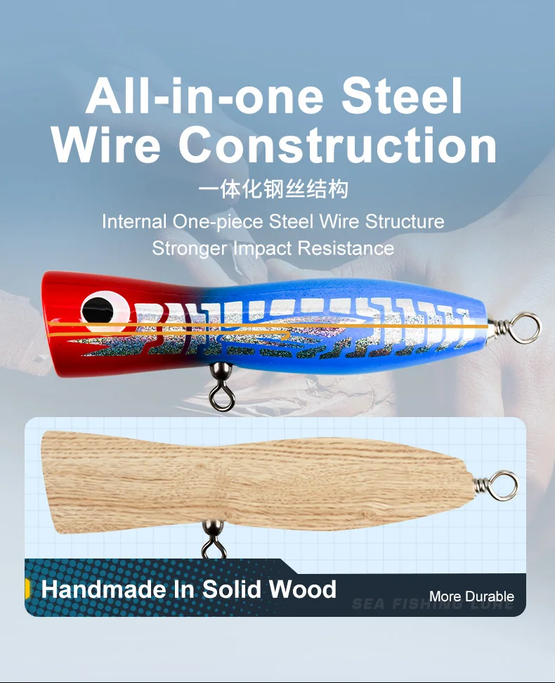 Patrón del cuerpo: uso de acabados de pintura de alta calidad y láminas de estampado en caliente para crear destellos y colores para atraer peces depredadores.