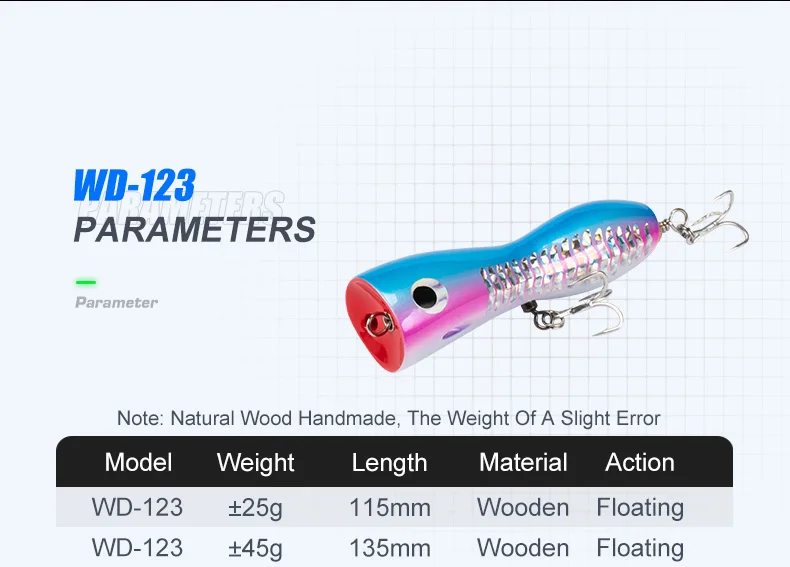 OBSESSION WD123 25g/11,5cm 45g/14cm Popper de madera cebo para curricán Mini señuelo para pescar Popper de madera cebos artificiales para agua