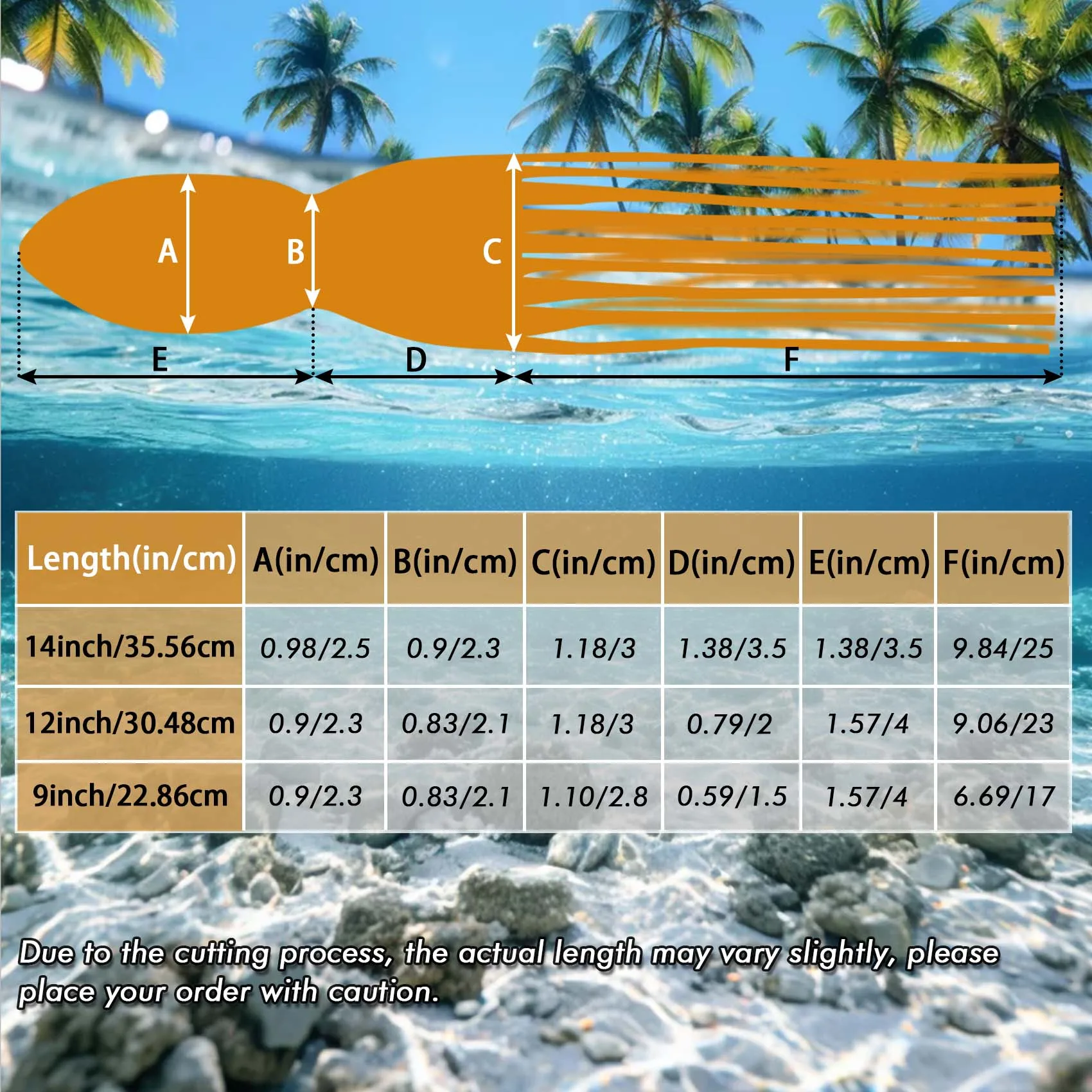 Elaborado con silicona suave, flexible y resistente al desgarro, lo que garantiza un uso duradero en agua salada y mantiene una acción de natación realista.