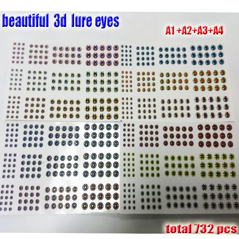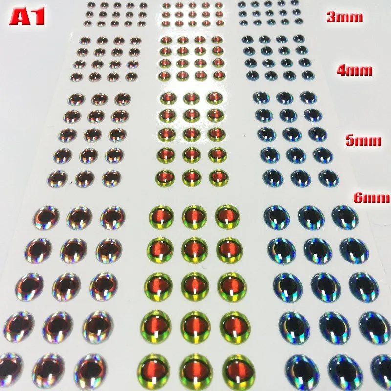 Ojos de señuelo 3d para pesca, A1A2A3A4, tamaño a elegir, 3mm, 4mm, 5mm, 6mm, cantidad: 2023 unids/lote, ojos de pez bonitos, artificiales de alta calidad, 732