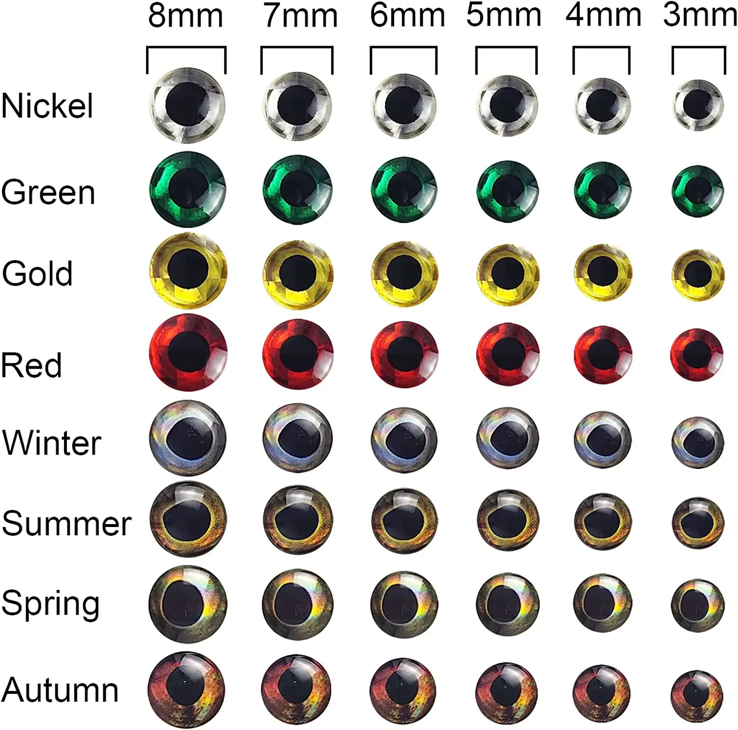 Los ojos de pez 3D superrealistas de Aventik añaden un toque realista a las moscas, señuelos o serpentinas que estás haciendo. También son ideales para usar con doblaje y Flash de cristal. Están diseñados por artistas de Fish Men. Esos ojos de pez están hechos de películas de base de láser JP holográficas y que cambian de color a través del proceso de impresión alemán más avanzado de Heidelberg.