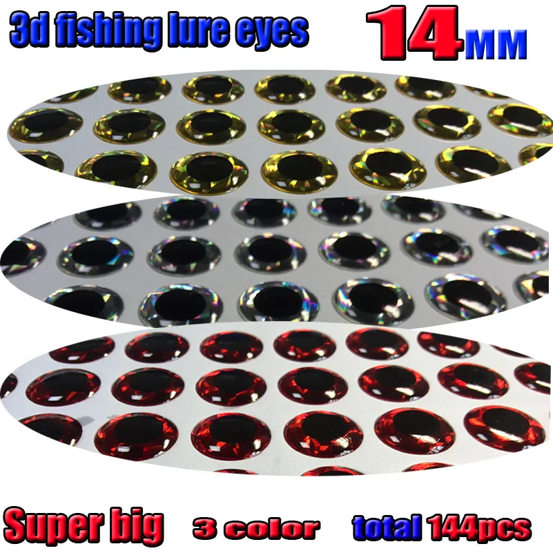 ¡Ojos súper grandes! 2016 ojos de pez 3d de plata de 14MM, 48 Uds. + rojo 48 Uds. + oro 48 Uds. En total 144 Uds./lote