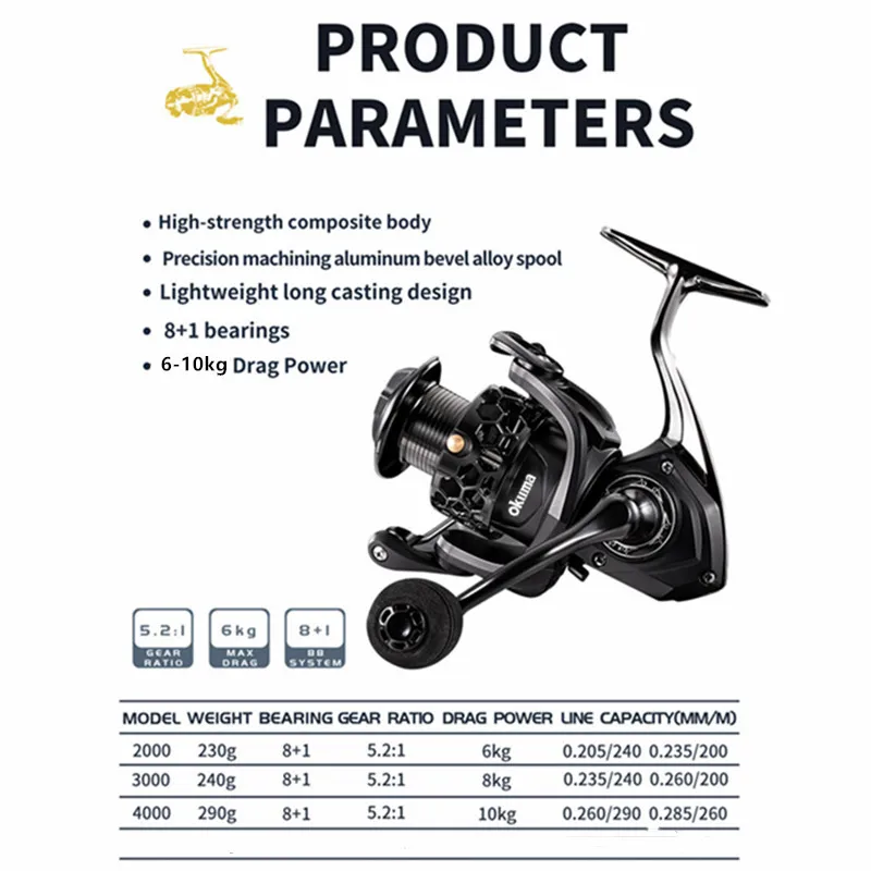 OKUMA 2000-4000 GTA rueda giratoria carrete de pesca de metal línea suave rueda giratoria de tiro ultra largo carrete de pesca carrete de pesca